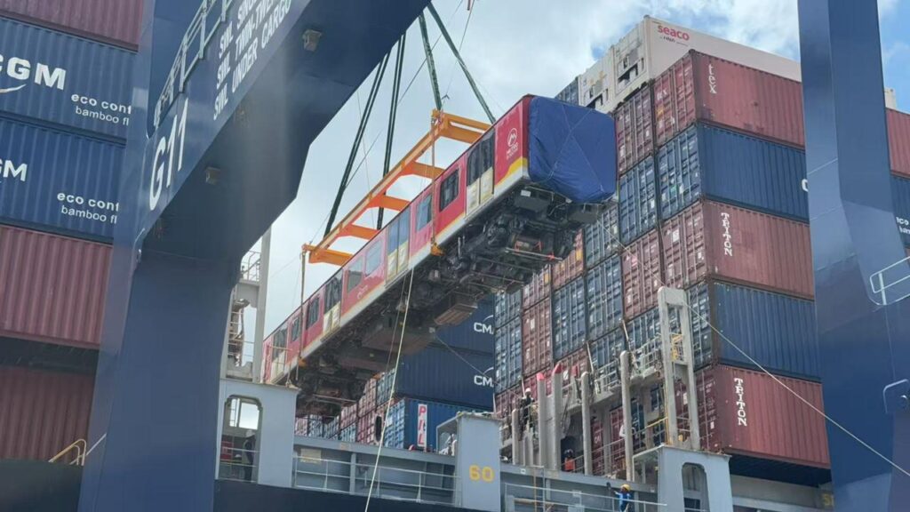 No paran las buenas noticias relacionadas con la Línea 1 del Metro de Bogotá. Mientras avanzan las obras en la capital, que con corte al 30 septiembre registraron un avance del 64,85 %, en la tarde del lunes, 6 de octubre, arribó desde China al puerto de Cartagena el segundo tren del sistema, conformado por 6 vagones. Hoy comenzó el descargue y en los próximos días iniciará su recorrido hasta el patio taller de Bosa.