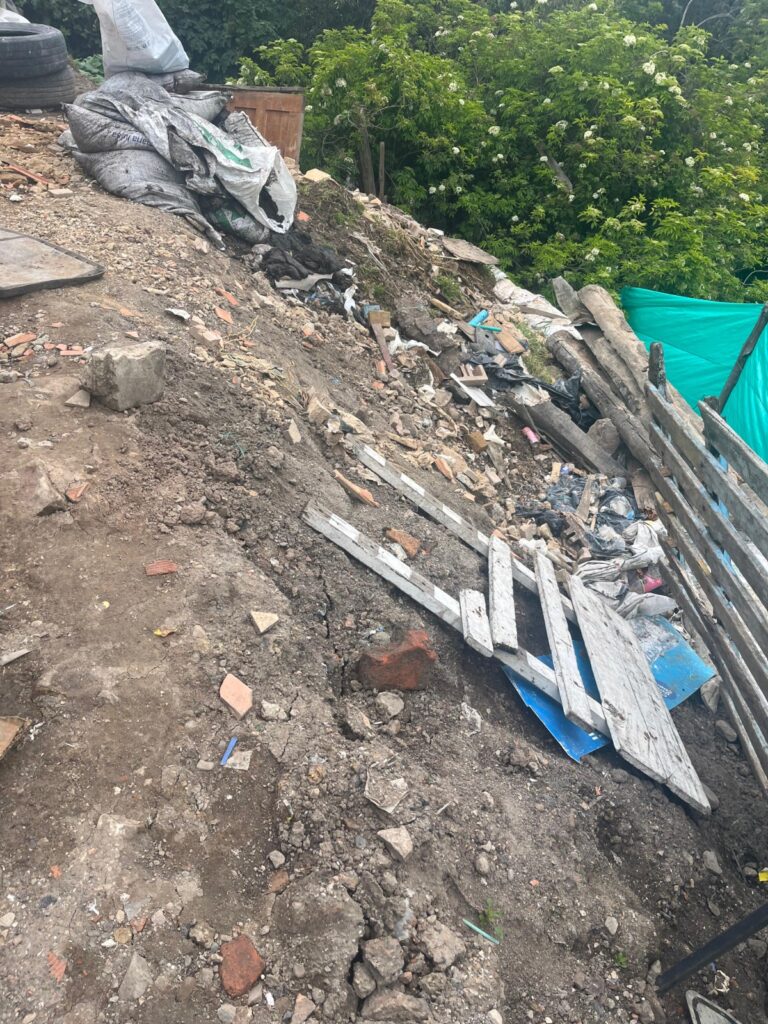En reciente visita realizada por personal de la regional Sabana Centro de la CAR se identificó la afectación al recurso suelo luego de evidenciar un relleno con escombros y fragmentos de ladrillo mezclado con tierra. Además, la construcción de un muro de contención con restos de neumáticos y residuos de lona.