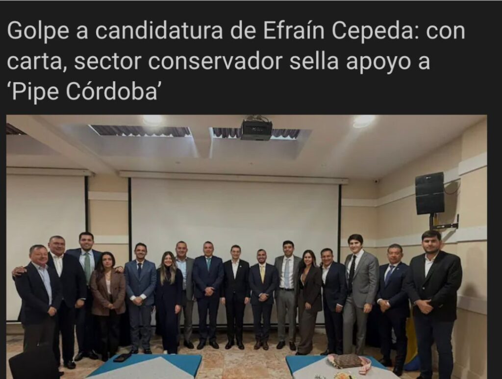 La carta de adhesión de unos representantes, elegidos en la anterior legislatura no es un golpe a la candidatura del Senador Efraín Cepeda. De hecho El no es el único candidato del Partido Conservador, es un golpe a la dignidad de la política, a la dignidad de un Partido.